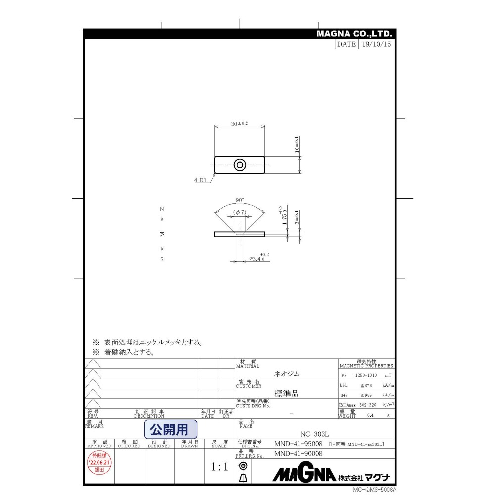 ネオジム磁石 プレートキャッチ 角型 30×10×3